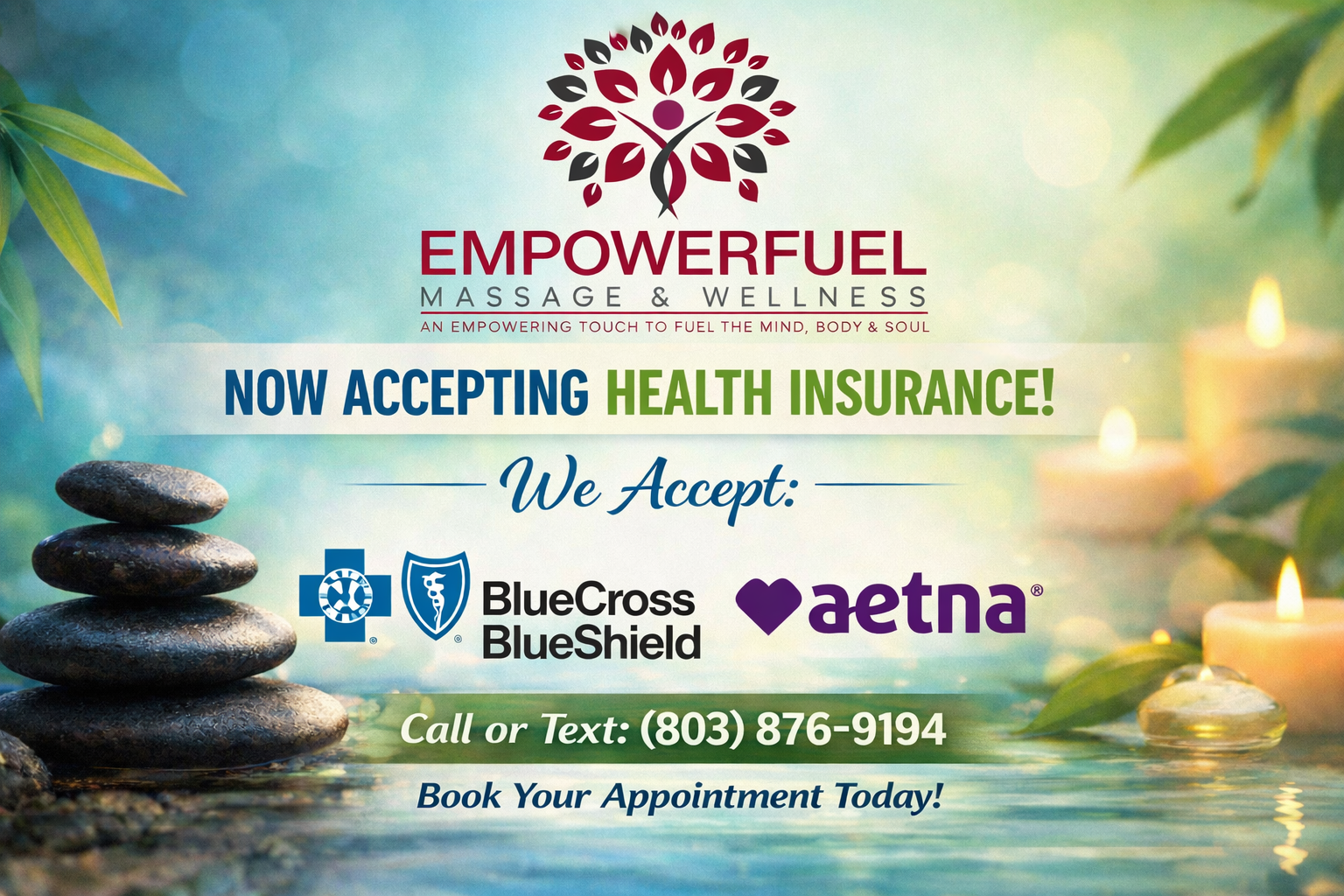 Now it’s time to move differently. Now it’s time to prioritize YOU. Whether it’s pain management, stress relief, or restoring balance—EmpowerFuel Massage & Wellness is here to support your journey with an empowering touch that fuels the mind, body, & soul. Book your appointment today! Call or text: (803) 876-9194 to verify your benefits.